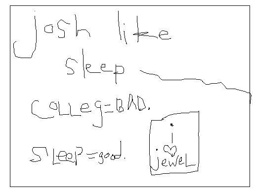 Actual work done by Yon. What is Josh going to do? One can only guess. One theory is that he may join the circus. But that’s only a theory. Others think that Josh will fall asleep and one day wake up in college. Yeah… that sounds like Josh.